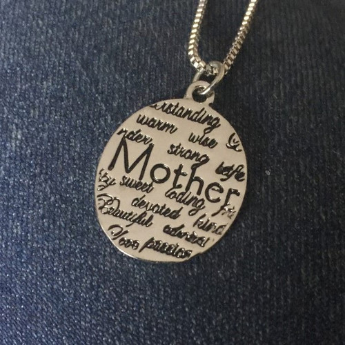 Beautiful Necklace perfect for Mothers Day or special gift at any time. Necklace is engraved with Mother, warm, strong, sweet, kind, beautiful, understanding, wise, devoted, passionate, happy etc.